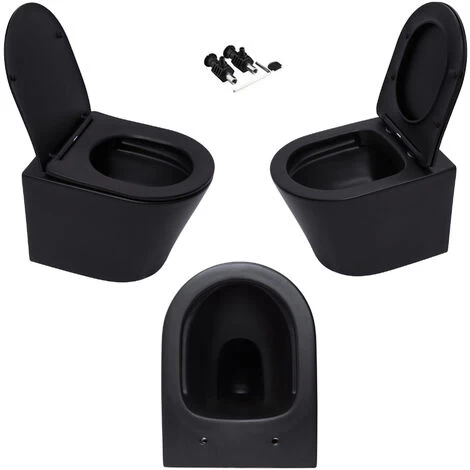 Rimless Wall Hung ECO Hidden Fixation Toilet & Seat (Matt Black)