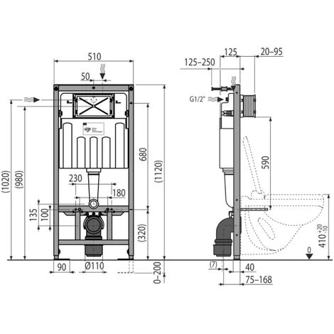 - (H) 1120mm x (W) 510mm x (D) Min.125mm – Max.250mm