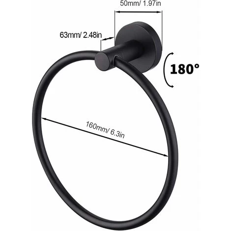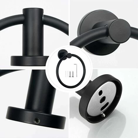 1.ใHigh qualityใ Bathroom towel ring is made of high quality stainless steel, it is a luxury bathroom hardware accessory. The connector ring and bracket seals have been carefully designed to ensure smooth installation, smooth operation and maximum durability. 2.ใCorrosion and rust resistanceใThe towel rack is made of high quality SUS304 stainless steel, which has high corrosion resistance and rust resistance. The matte black finish resists scratches, peeling, fading and corrosion. A black towel rail is a must for any home or commercial bathroom project. 3. CONTEMPORARY DESIGN: The towel ring’s clean aesthetic and silky smooth matte black finish complements any existing bathroom accessory, guaranteeing an instant upgrade of your room. 4. Great for Small Spaces: Towel racks are perfect for bathrooms with limited space. The compact nature of the towel ring makes it an ideal solution for storing bathroom towels. 5. EASY INSTALLATION: The towel ring is quick and easy to install in any bathroom. Including wall brackets, formwork and fastening material. The towel rail body attaches securely with the included bracket.