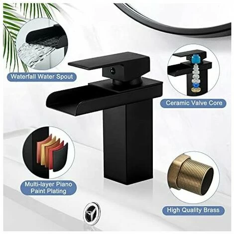 - The black waterfall bathroom faucet The tub features a precise ceramic valve core, which can accurately adjust the water volume and temperature.
