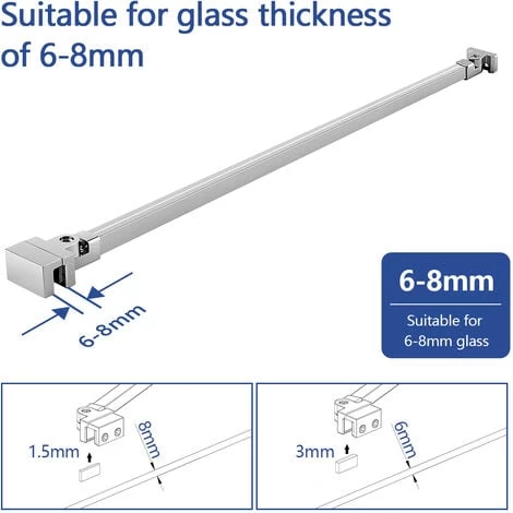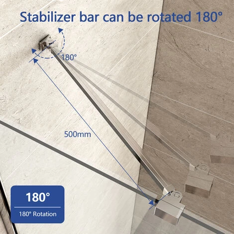 Meykoers 50cm Shower Enclosure Stabilizer Bar, Aluminum Alloy Stabilizer Bar for 6-8mm Wall Mount Shower Door Stabilizer Bar