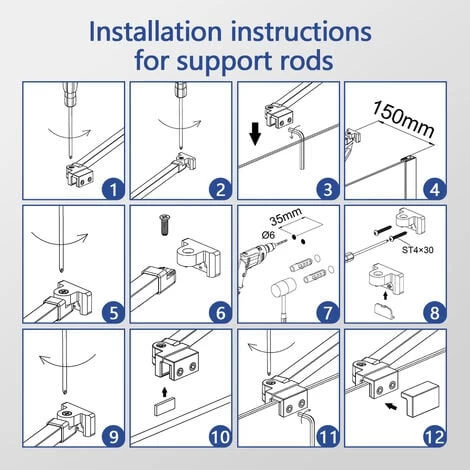 ▶Aluminum rod body/stainless steel and zinc fittings, chrome finish, universally applicable to most shower enclosures and doors.