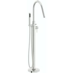 Minimalist design is at the heart of this freestanding bath shower mixer tap, with a lever handle controlling both temperature and flow.