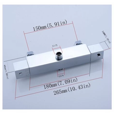 Top outlet size – 3/4 BSP (25mm) for shower column, bottom outlet size: 1/2 BSP (21mm) for shower hose.