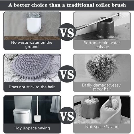 Clean every dead spot: The soft, flat toilet brush gets into nooks and crannies and cleans hard-to-reach places. The silicone toilet brush is light in weight and will not get tired after prolonged use. The perforated sides are breathable and keep the toilet brush dry.
