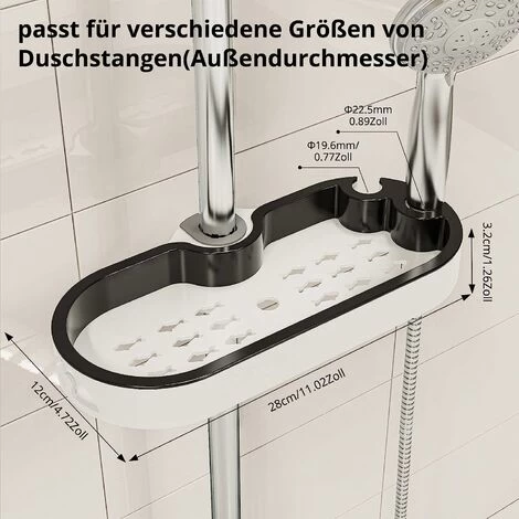 This shower soap dish is suitable for shower rod diameter 22, 24, 25mm