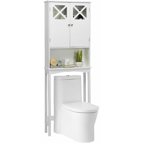 Our bathroom space saver provides excellent storage solutions for bathrooms with limited space. The over the toilet storage rack will provide you with large space to place items so that you can enjoy a tidy bathroom. Meanwhile, this bathroom space saver with tempered glass door not only can keep dust out of the cabinet, but is convenient to find what you need. This open shelf allows quick access to bath supplies when you need them. Designed with adjustable shelf and bottom bar, the bathroom organizer allows store necessities of different heights. Additionally, the solid frame combined with the anti-tilt device makes the bathroom organizer is sturdy and stable. This white wall cabinet blends charm and practicality perfectly. Whether it is a bathroom or a laundry room, it is a good organizer.
