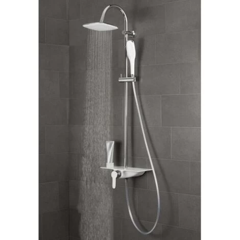 Transform your bathroom into a wellness oasis with this quality overhead shower set with single lever mixer and tray WATERWAY from SCHÜTTE!