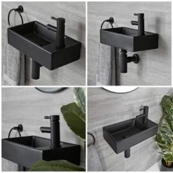 Milano Nero – Black Ceramic Modern Wall Hung Bathroom Basin Sink With One Tap Hole – 400mm X 220mm