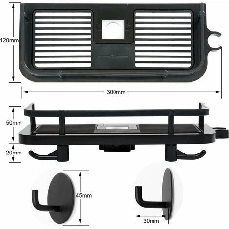 Flexible Design: This no-hole shower shelf makes full use of the space around the shower bar without taking up extra space. The shower tray is made of ABS that is completely waterproof, corrosion resistant and does not harbor bacteria, and the whole bottom of the shower shelf has a hollowed-out drainage frame that does not collect water.