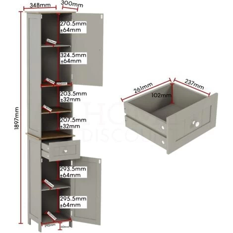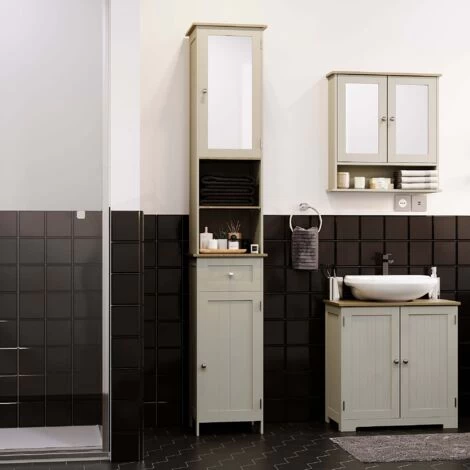 Home Discount offers this stunning new product with a modern stylish design, the Priano 2 Door Tall Cabinet with Mirror, Grey. What is the easy and stylish way to get rid of the bathroom clutter? Well, there are just two simple steps. First, get your hands on this freestanding bathroom storage cabinet; second, organize all your bathroom essentials in there. You will be impressed by how much storage it can offer to you with two cabinets, two open shelves and smoothly sliding drawer! Bathroom cabinet features modern doors to keep your personal items dust- and splash-free and built-in mirror at the top.