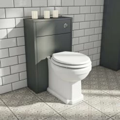 Orchard Dulwich Stone Grey Slimline Back To Wall Unit And Traditional Toilet With White Wooden Seat