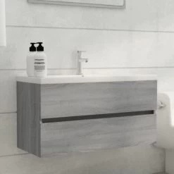 Sink Cabinet Grey Sonoma 90×38.5×45 Cm Engineered Wood VidaXL