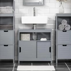 SoBuy Under Sink Bathroom Storage Cabinet With Shelf And Double Sliding Door,FRG128-SG