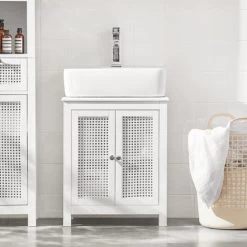 SoBuy Under Sink Bathroom Storage Cabinet With Sliding Door,White,FRG128-W