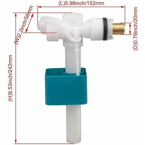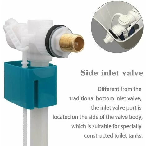 - Note: Item color may vary slightly due to photography and your own computerBrass wire for better secure fixingUniversal design and suitable for side entry toilet cisternsQuiet filling from the bottom of the valveThread diameter: 2 cmMaterial: plasticcolor: whitesize: approx. 24 x 15 cm/9.4 x 6 inches weight: 210 g