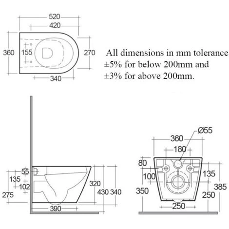 | Toilet Projection | 520mm |