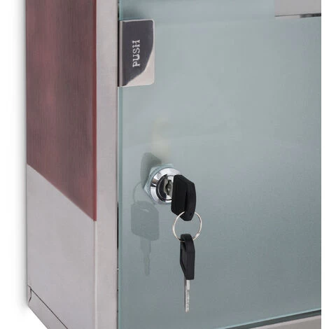 The satined glass cross design along with the wood-look side parts give this medicine cabinet a little extra flair that make it an eye-catcher in your bathroom.
