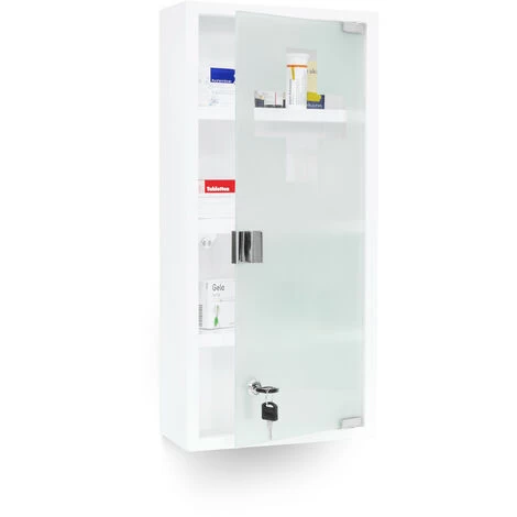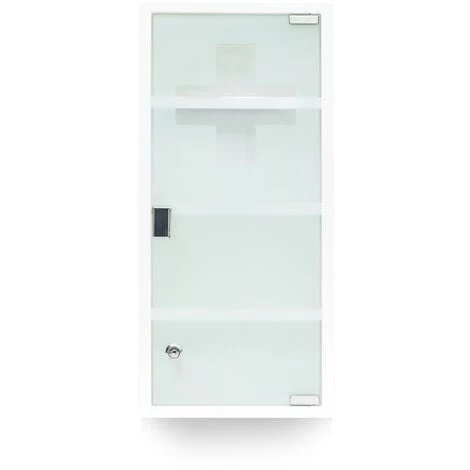 The white stainless steel and frosted glass make for an elegant combination that will blend discreetly into your bathroom. The cross design in the front door is both a practical viewing window and a decorative element for the cabinet.
