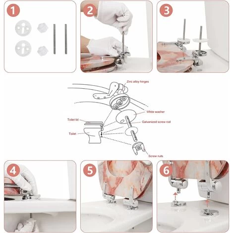 【HIGH QUALITY】Toilet Hinge Fixings Made of high quality zinc alloy materials, durable, wear resistant, acid resistant and not easy to rust, safe and firm, durable, excellent toughness, high hardness , so it is more wear-resistant, not easy to be damaged, deformed and cracked, and can be used for a long time without oxidation. Helps stabilize the toilet lid.【EASY INSTALLATION】Toilet seat fixing kit It is easy to disassemble and reassemble. You just need to use a screwdriver to remove the old hinge and install the new hinge in the same hole. When the toilet seat cover is firmly fixed and no longer shaking, it is easy to install with all parts.【DURABLE AND STABLE】 The delicately designed toilet seat hinges have been carefully processed, and each part is polished and polished .The hinges of the toilet seat are clear and unmarked, and the structural texture is stable so that the toilet seat and the lid are tightly connected. hinges spare parts The workmanship does not scratch. The smooth parts will not scratch your hands .【WIDELY APPLICABLE】Stainless steel hinge Easy to disassemble, simple and convenient without much technical operation, the toilet seat can be firmly fixed on the toilet, suitable for beginners and women. It is very suitable for use in restrooms, restaurants, hotels, schools, public places and other places.【REMINDER】The toilet rubber chain kit includes 2 x toilet seat hinges, 2 x rods threaded, 6 x rubber kits and 8 x screws. It is suitable for most toilets, but before purchasing, please be sure to compare the size of your old parts with the size in our product photo in detail to avoid the size being inappropriate.