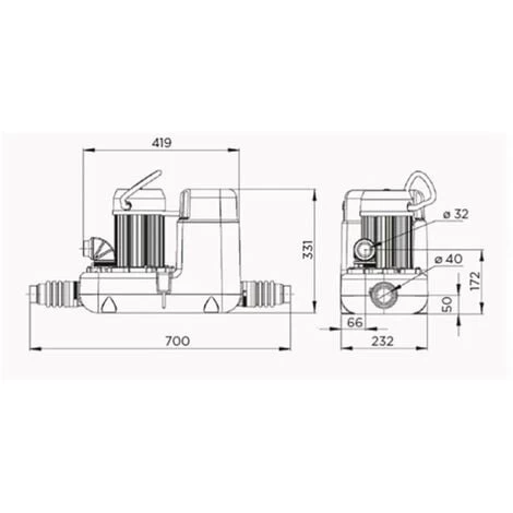 Pumps up to 8m vertically or 80m horizontally It has two inlets and it discharges through 32 mm pipework. It has a working temperature of 35ºC, however it will handle temperatures up to 90ºC for short periods. The Sanicom 1 has a tank capacity of 10 litres and the unit operates automatically.