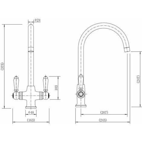 The body, spout and handles are cast from solid brass for robustness and strength. The handles are then covered with ceramic for that added historical design. The remaining brass is then luxuriously finished in a gorgeous chrome.