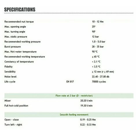 | Pression de travail | Recommandée 1.0-5.0 bar |