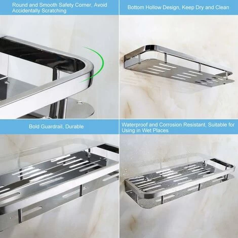 1, Durable: Chrome finish, modern style. Made of solid SUS 304 stainless steel, tarnish and rust resistant, ensuring quality and longevity. Bearing weight for each bathroom shelf is 10kg.