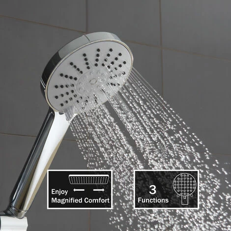 - ★【Comfortable】: The head shower sprays 220mm wide water, and refreshes you with a rain shower experience. The hand shower has 3 types of jets to choose from.