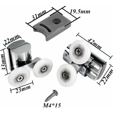 A set of 4 pieces: 2 rollers for upper shower door + 2 rollers for lower shower door