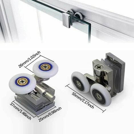 【Practical shower sliding door roller】Zinc alloy body, strong bearing capacity, pure copper shaft core does not rust, with nylon rollers, smooth and quiet, the silicone gaskets won’t pinch the glass.