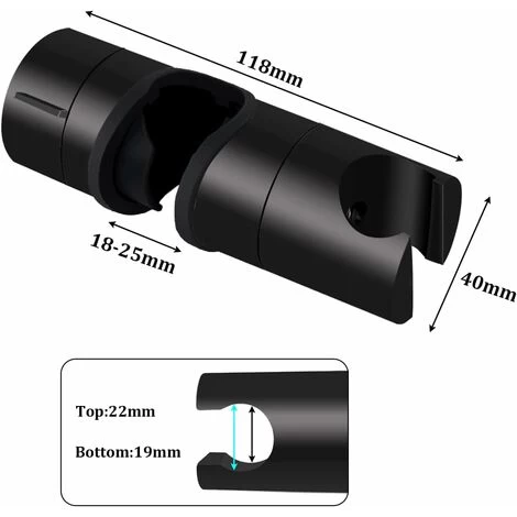 Universal fixing The shower holder is suitable for shower rails with a diameter of 18 to 25mm which will cover most household shower slides. But out for an abundance of caution Please check the diameter of your shower rail to ensure it is within the dimension range before placing your order.