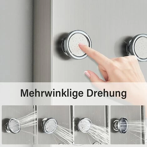 【6 Body Massage Spray】①Shower panel with 6 gentle feel light spray jets offer warm and soothing water onto your tired and sore muscles, thus providing effective relief from muscle pain and leaving you feeling refreshed; ②The angle adjustable jets can be angled to suit everyone, from the tallest to the shortest, for a truly customized shower experience