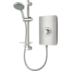 Triton Aspirante Electric Shower 8.5kW Head & Riser Brushed Steel