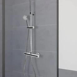 Bathroom Shower Kit Adjust Riser Rail Hose Twin Shower Heads Chrome Square Set