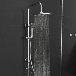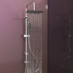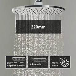 Round Shower Riser Kit Chrome Dual Shower Heads Adjustable Overhead Bathroom
