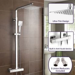 Winstead Square Thermostatic Bath Mixer Shower Riser Rail Kit