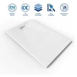 ELEGANT 1200x800mm Shower Tray White Slate Effect Shower Base Grain Rectangular With Waste Trap