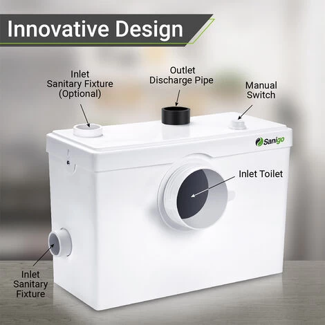 - Multiple inlets that can be connected to sanitary devices such as a toilet, bathtub, shower, kitchen sink, and more