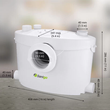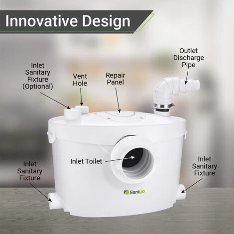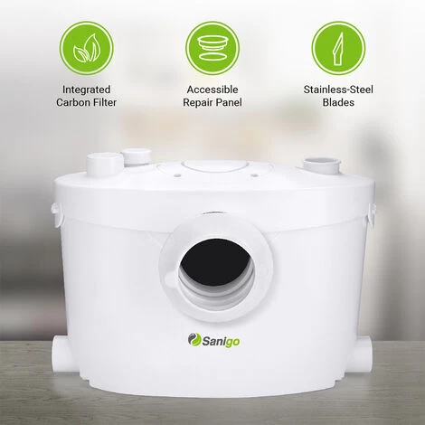 It has a pumping distance up to 8m vertically and 80m horizontally, with a maximum flow rate of 145L/min. It features a silent motor at 30-50 dBs and is safe for household use. It also features a carbon filter to minimise strong odours, and a removable repair panel for accessibility during troubleshooting.