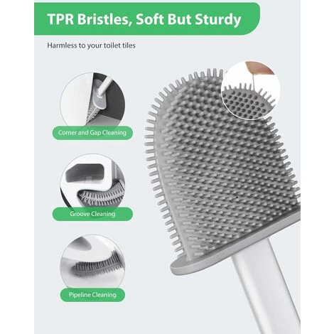 Silicone material: The toilet brush is made of PP and TPR (thermoplastic rubber) to prevent scratching or damaging the toilet, and due to its material, it will not hold or will not absorb dirt and will not deform.