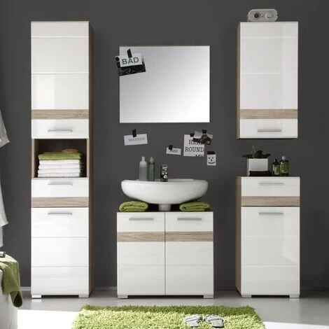 - High-gloss white finish: The white fronts and body design create a timeless style that integrates harmoniously into your bathroom. The surface, suitable for damp areas, is particularly hard-wearing and easy to clean.