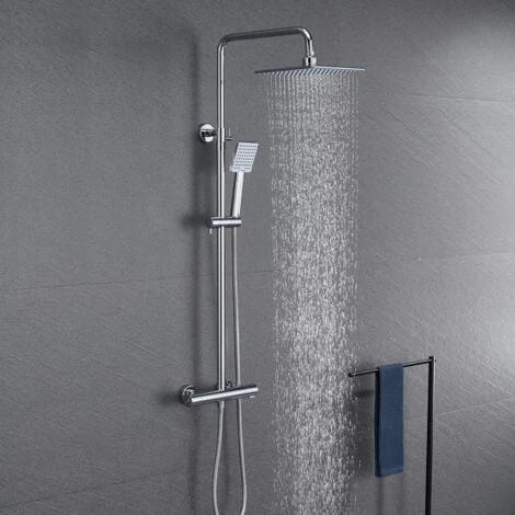 - Package:2 X Riser Rail, 1 X Thermostatic Shower Mixer Valve, 1 X Shower Head Round, 1 X Handheld Shower And Hose, Fittings