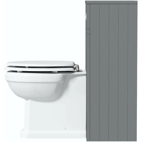 Manufactured from moisture-resistant engineered wood and complete with a semi-matt slate grey finish, plus tongue and groove sides, this back to wall unit comes with KEKU fittings for easy access and installation.