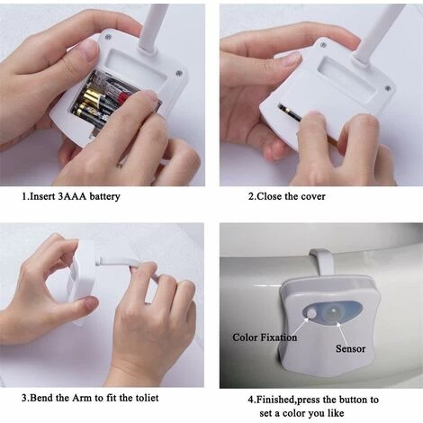 Remove batteries if toilet night Light is to be unused for two months or more, since batteries could leak and damage the toilet night Light.