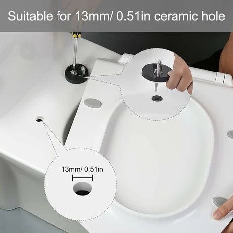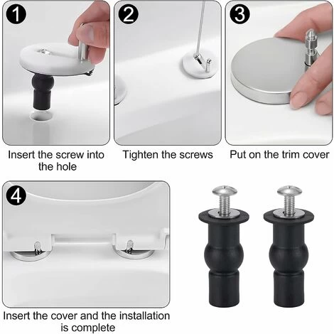 Toilet seat screw is a good helper for toilet repair. Features: -Replacement for wall hung or wall hung toilet bowls. Ideal for broken or old toilet seat hinges. -Compact design facilitates installation, quick disassembly and cleaning. -The toilet lid lid seat fasteners are made of good quality material, excellent toughness, sturdy, stable and durable. -Screw the toilet seat hinges into the upper hole of the toilet lid, and tighten well so that the toilet lid is no longer loose. -The rubber grommets have a threaded section so you can simply push them into the holes at the top of the toilet bowl and as you tighten the screw it expands and tightens in the hole. Specifications: Material: Iron Rubber Color: Black How to install the toilet seat hinge fixings? 1.Just push them through the holes. 2. Put on the supplied washers. 3. Screw from above. Package includes: 4 * Toilet Seat Fittings Warm Tips: If you have any questions about our products, please feel free to contact us, we will get back to you within 24 hours.