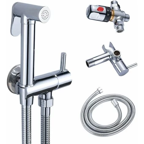 Set thermostatic round and modern chromed shower head for bidet in brass Kit .