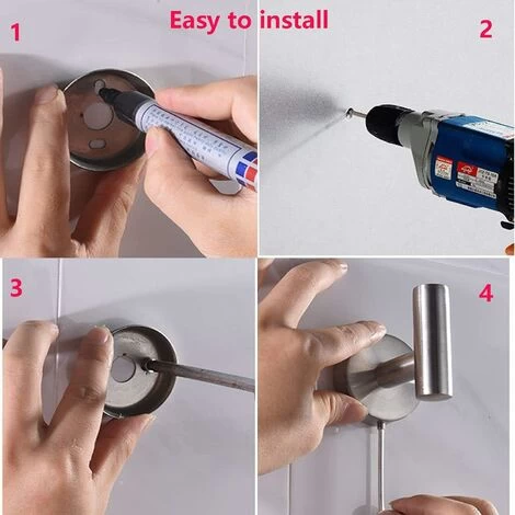 - EASY INSTALLATION: Use included to install these bathroom towel hooks in minutes. You can also choose screw mounting with stainless steel screws and anchors in the package. The screws are made of SUS 304 stainless steel and will not rust. Maximum load: 5 kg. Screw-mounting to a solid concrete wall.