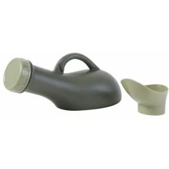 Urinal unisex design, with a removable female funnel adapter, suitable for both men and women, smooth rounded edge to fit comfortably male and female anatomy, features an army green body that hides contents inside and an easy-to-use 6.5cm wide opening