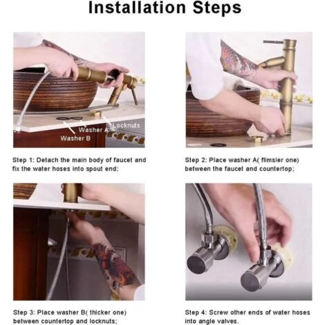 Single hole for water and cold water: single bamboo handle. Unique faucet with aerator nozzle, user-friendly water flow speed with water saving up to 30%.